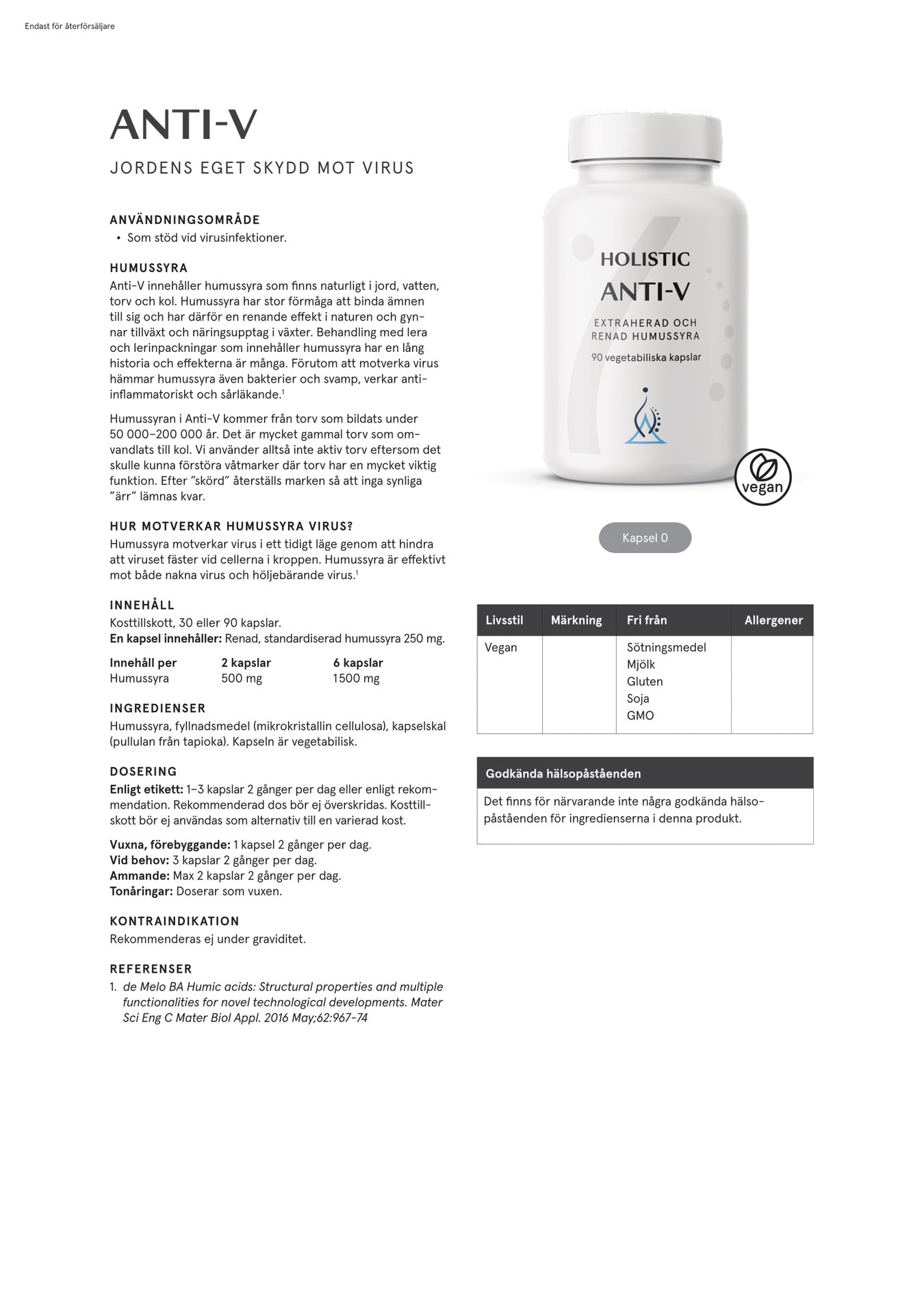 Anti-V Humussyra Kapslar erbjuder en naturlig och renande effekt för din kropp.