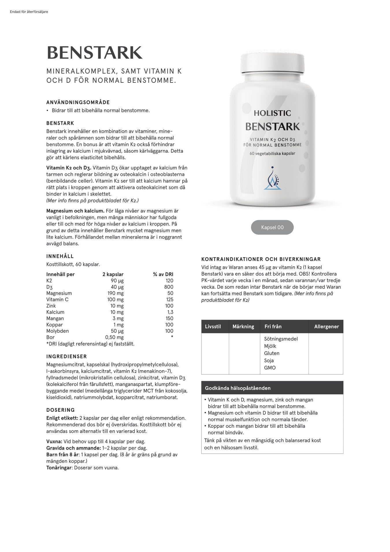Träningstips: För att maximera effekten av Benstark, kombinera med en balanserad kost och regelbunden träning. Kom ihåg att styrketräning kan hjälpa till att bygga upp benmassan. Och glöm inte att dricka vatten – även ben behöver vätska!
