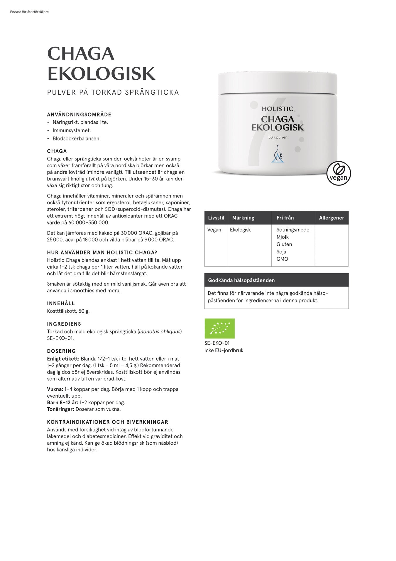 Näringsrikt innehåll – Chaga pulver är rikt på spårämnen, polysackarider och fytonutrienter som stödjer din hälsa.