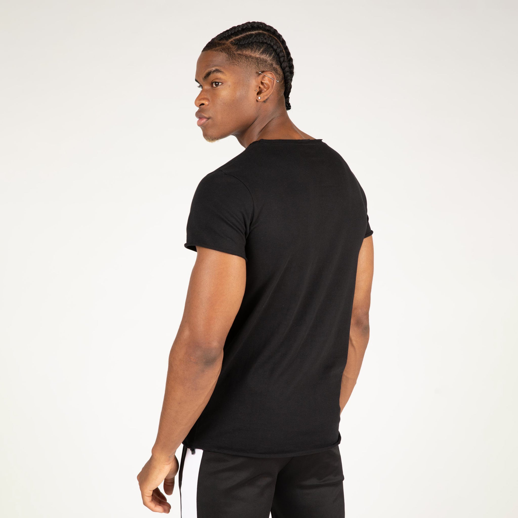 Stilren design – T-shirten har en tuff look med råa kanter och en vid halslinning som ger en modern känsla.Komfort i fokus – Tillverkad av mjuk och bekväm bomull som gör att du kan röra dig fritt.